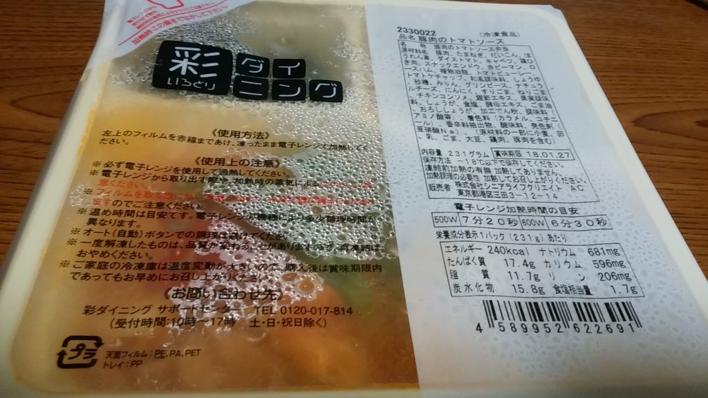 今日は、彩ダイニングの「カロリー・塩分調整コース」の肉じゃがを食べてみました。 冷凍の宅配弁当です。一人暮らしには重宝します。 カロリーは236kcal 食塩は1.3g 電子レンジの加熱時間は500W …